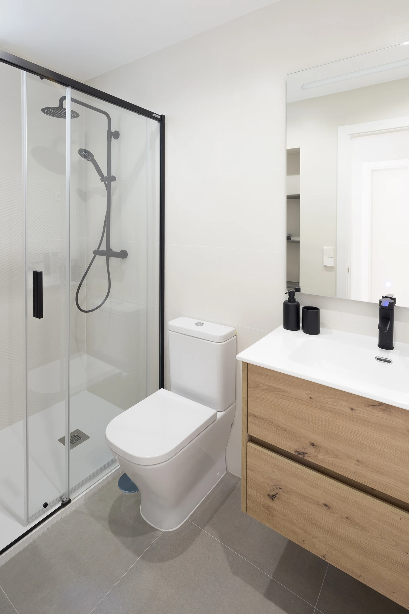 Gracias a la altura de techo se consigue una cocina en portería aumentando la capacidad de almacenaje.