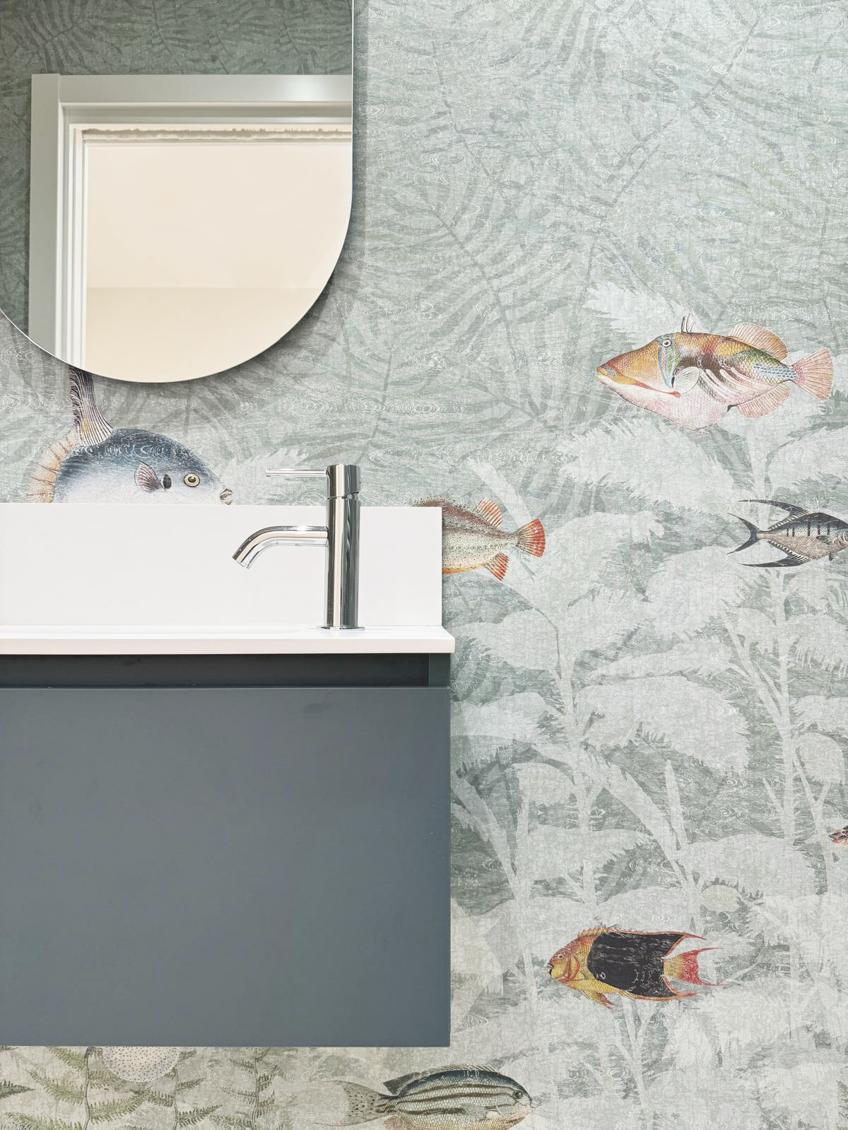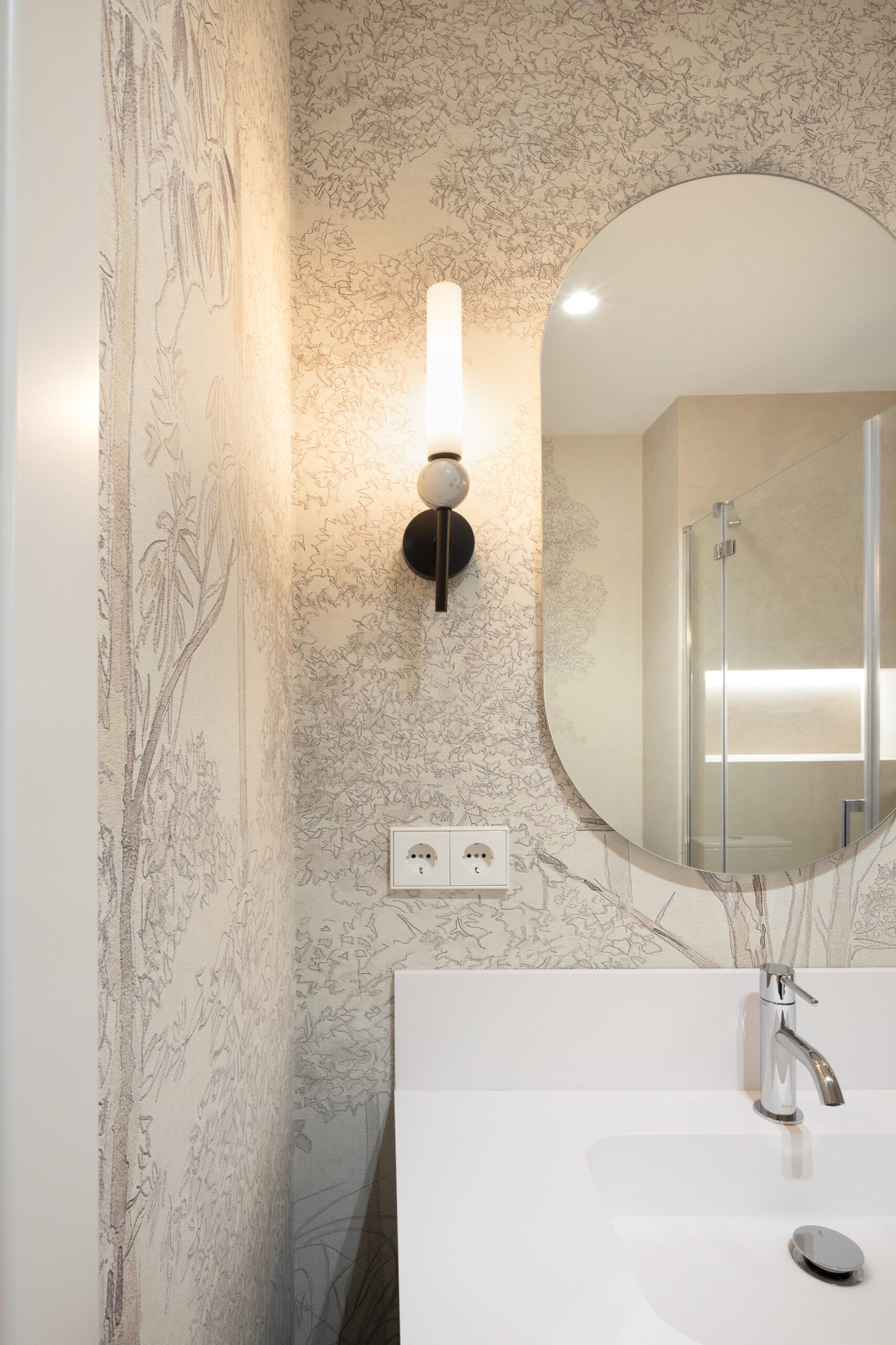 En la actuación se busca mantener el estilo sencillo y clásico en toda la vivienda, rehabilitando la tarima de madera y aportando unos toques de color en baños y cocina con papeles pintados.